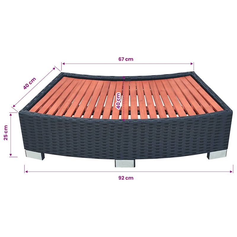Спа стъпало, полиратан, 92x45x25 см, черно
