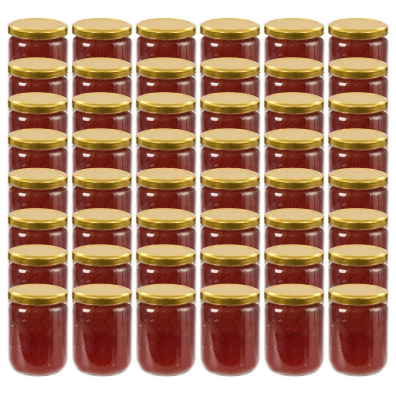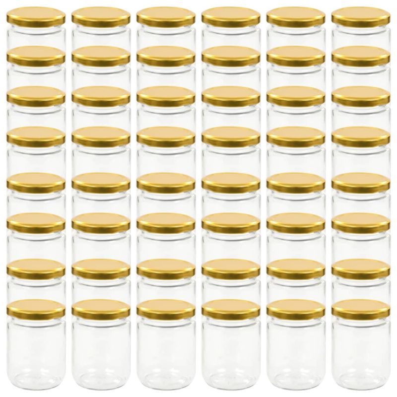 Стъклени буркани за сладко със златисти капачки, 48 бр, 230 мл