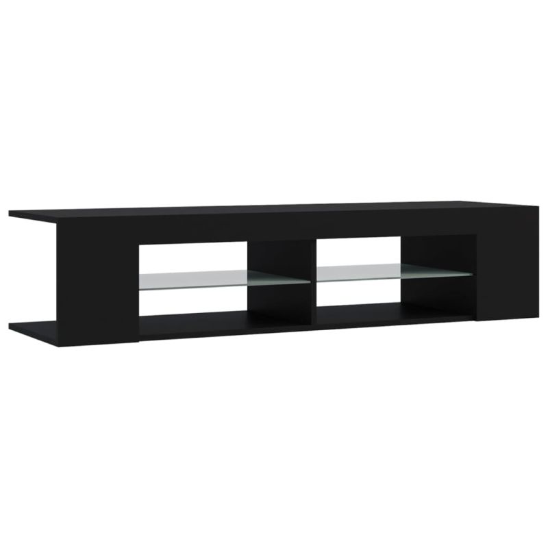 ТВ шкаф с LED осветление, черен, 135x39x30 см