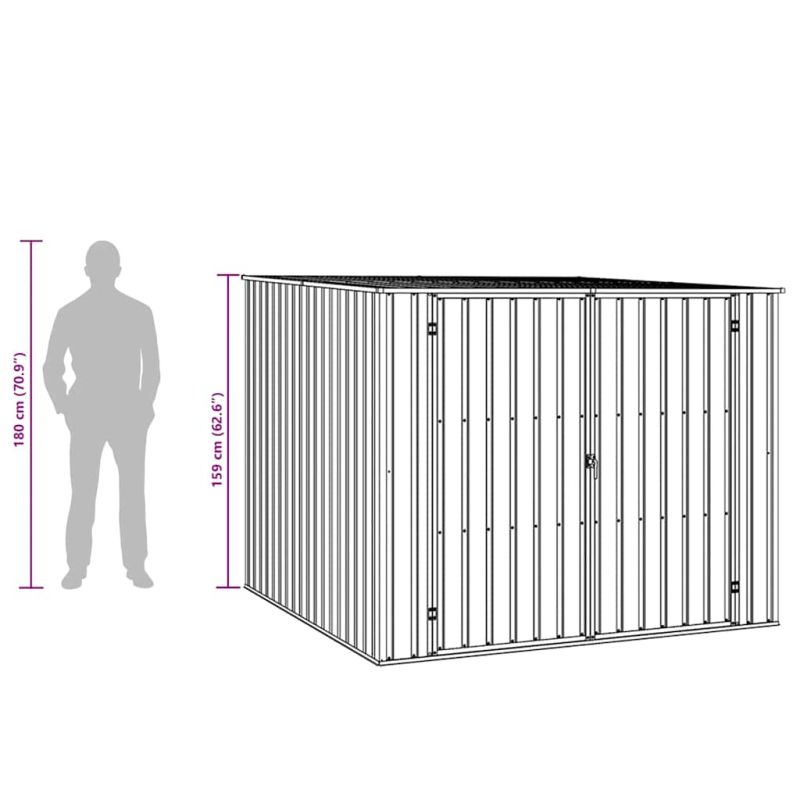 Тази градинска барака е перфектна за съхранение на голямо разнообразие от предмети, като инструменти, градински мебели, градинско оборудване и др. Бараката предлага защита от мръсотия, прах, силен вятър и неблагоприятно време. Градинската барака за съхранение, изработена от поцинкована стомана, изисква минимална поддръжка и е много издръжлива. Двойно отварящите се врати отпред позволяват лесно влизане и излизане. Освен това дъждовната вода автоматично се оттича от покрива, който има наклонен дизайн.