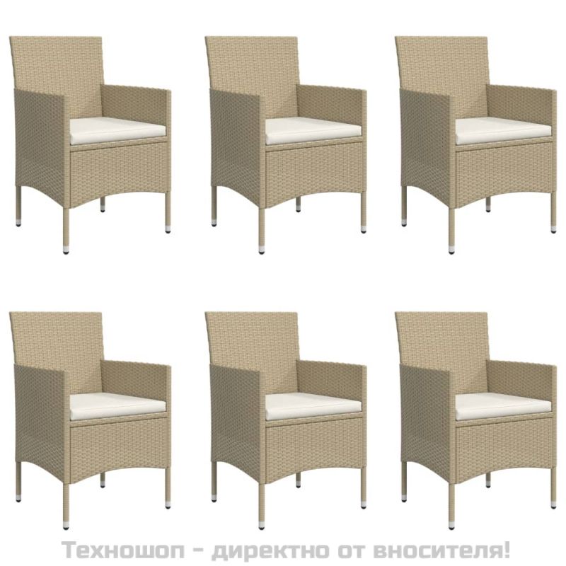 Градински трапезен комплект с възглавници 7 части бежово/черно