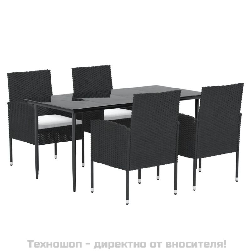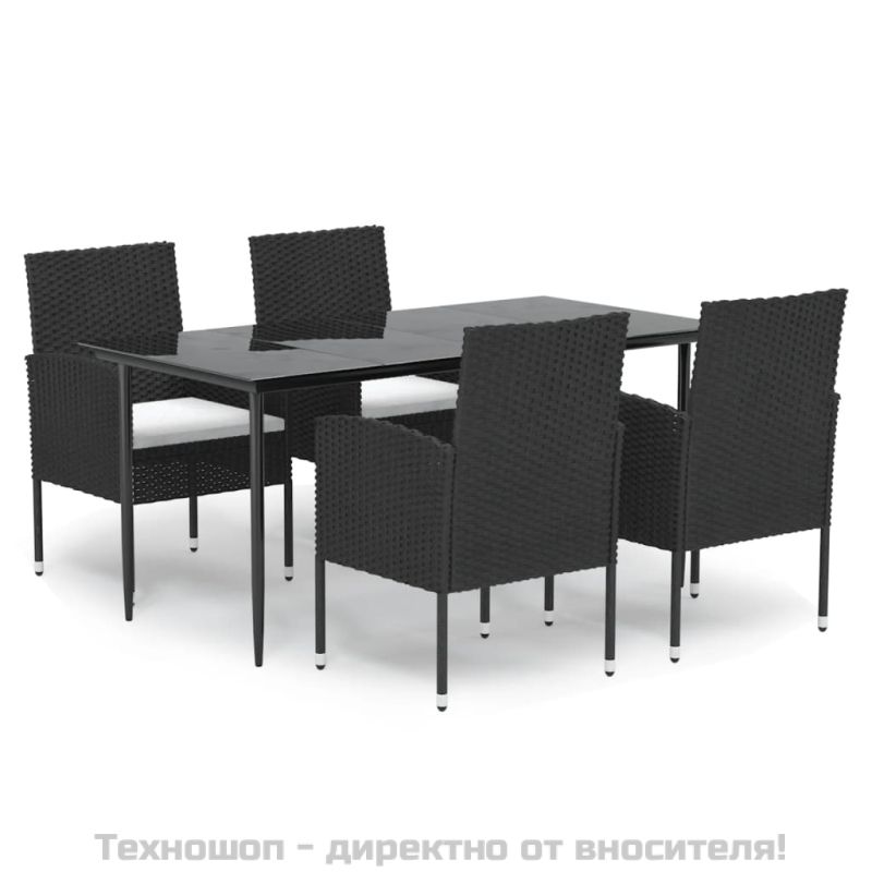 Градински трапезен комплект възглавници 5 части черен полиратан