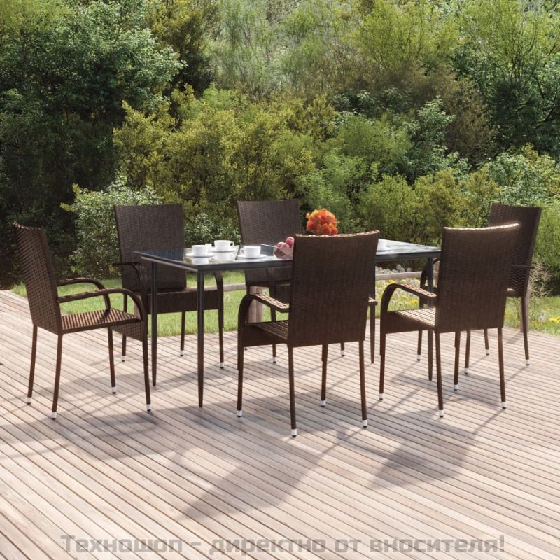 Градински трапезен комплект от 7 части, кафяв, полиратан