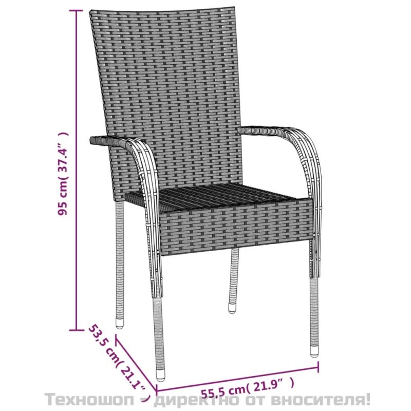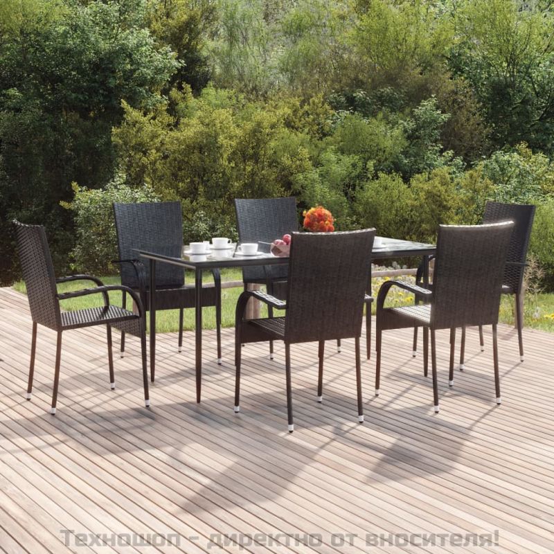 Този градински трапезен комплект е чудесен избор за хранене или почивка на открито! Издръжлив материал: PE ратан, известен също като полиратан, е устойчив на атмосферни влияния и лесен за почистване. Той остава красив отвън за дълъг период от време. Предлага отлично качество, удобство и естетичен вид.Здрава рамка: Прахово боядисаните стоманени рамки правят комплекта за хранене на открито здрав и стабилен за ежедневна употреба на открито.Практичен плот: Гладкият плот на трапезната маса е изработен от закалено стъкло, което се почиства лесно с влажна кърпа. В допълнение, здравият плот е идеален за поставяне на ястия, напитки и други декоративни елементи.Гъвкав дизайн: Благодарение на леката конструкция, тези външни столове са лесни за преместване и могат да се подреждат един върху друг, за да се спести място, когато не се използват. Забележка:Забележка: За да удължите живота на вашите градински мебели, ви препоръчваме да ги защитите с водоустойчиво покривало.Всеки продукт се доставя с ръководство за сглобяване в кашона за лесно сглобяване.