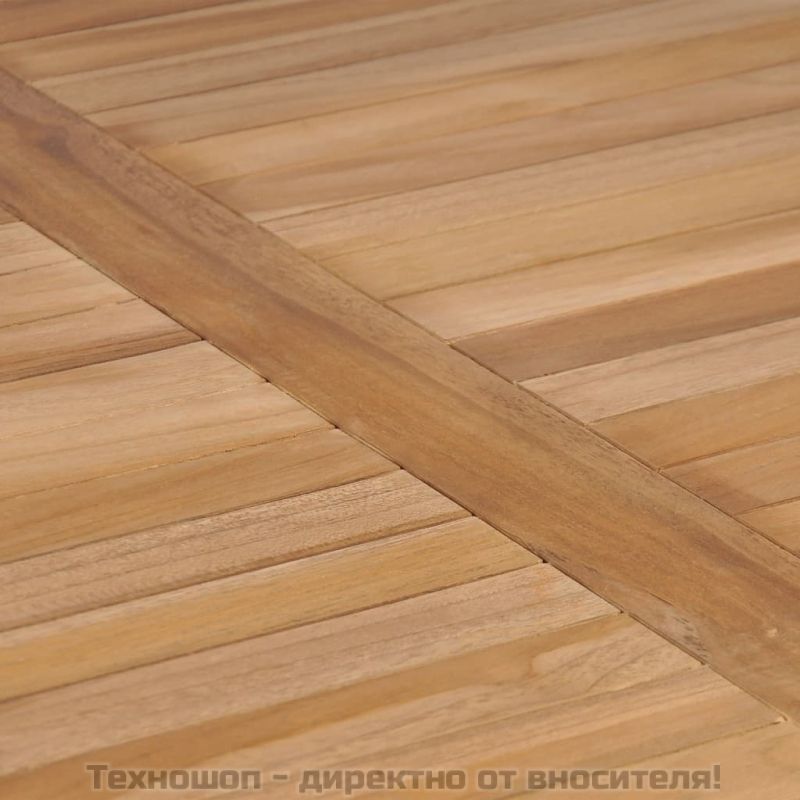 Тази трапезна маса от дървен масив с лаково покритие на водна основа ще добави естествен чар към вашата кухня, градина или вътрешен двор. Тази мебел от тик е изработена от изключително издръжлива тикова твърда дървесина, която е суха – изсушена в пещ, а след това фино шлифована, за да ѝ се придаде много гладък вид. Тиковото дърво е известно с изключителната си здравина и устойчивост на атмосферни влияния, което го прави далеч по-подходящо за градински мебели от всеки друг вид дърво. Тиковата дървесина е идеалният избор, ако искате да закупите дълготрайна градинска мебел. Нанесен е красив финиш на водна основа за придаване на топъл цвят на дървото. Благодарение на изключително дебелия плот (3 см) и големите крака (5x5 см) тази маса от масивно дърво е много издръжлива и може да предостави удобство при настаняването на вашите гости. Благодарение на водоустойчивата си функция и класическия си външен вид можете да поставите този елемент навсякъде във вашия любим дом – на закрито или навън! Нашата маса се сглобява лесно.