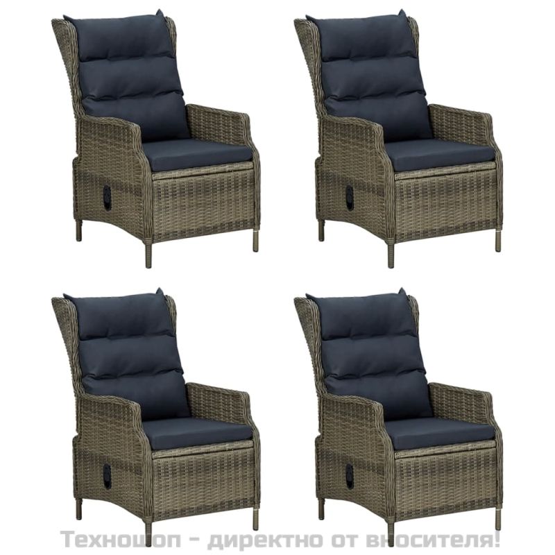 Насладете се на хубава храна или следобеден чай във вашето открито пространство с този градински трапезен комплект! Отличаващ се с елегантен дизайн, той ще се превърне във фокусната точка на вашата градина и вътрешен двор! Материал, устойчив на атмосферни влияния: PE ратан, известен също като полиратан, е устойчив на атмосферни влияния и лесен за почистване. Той остава красив отвън за дълъг период от време. Предлага отлично качество, удобство и естетичен вид.Здрава рамка: Прахово боядисаните стоманени рамки правят комплекта за хранене на открито здрав и стабилен за ежедневна употреба на открито.Практичен плот: Гладкият плот на трапезната маса е изработен от закалено стъкло, което се почиства лесно с влажна кърпа. В допълнение, здравият плот е идеален за поставяне на ястия, напитки и други декоративни елементи.Регулируема облегалка: Благодарение на газовия повдигащ механизъм облегалката също може да се регулира, за да се нагоди към вашите пози. С докосване на бутона отстрани облегалката може да се накланя за удобна позиция.Допълнителен комфорт: Дебело подплатените възглавници на тези трапезни столове осигуряват максимален комфорт по време на седене. Забележка:Забележка: За да удължите живота на вашите градински мебели, ви препоръчваме да ги защитите с водоустойчиво покривало.Всеки продукт се доставя с ръководство за сглобяване в кашона за лесно сглобяване.