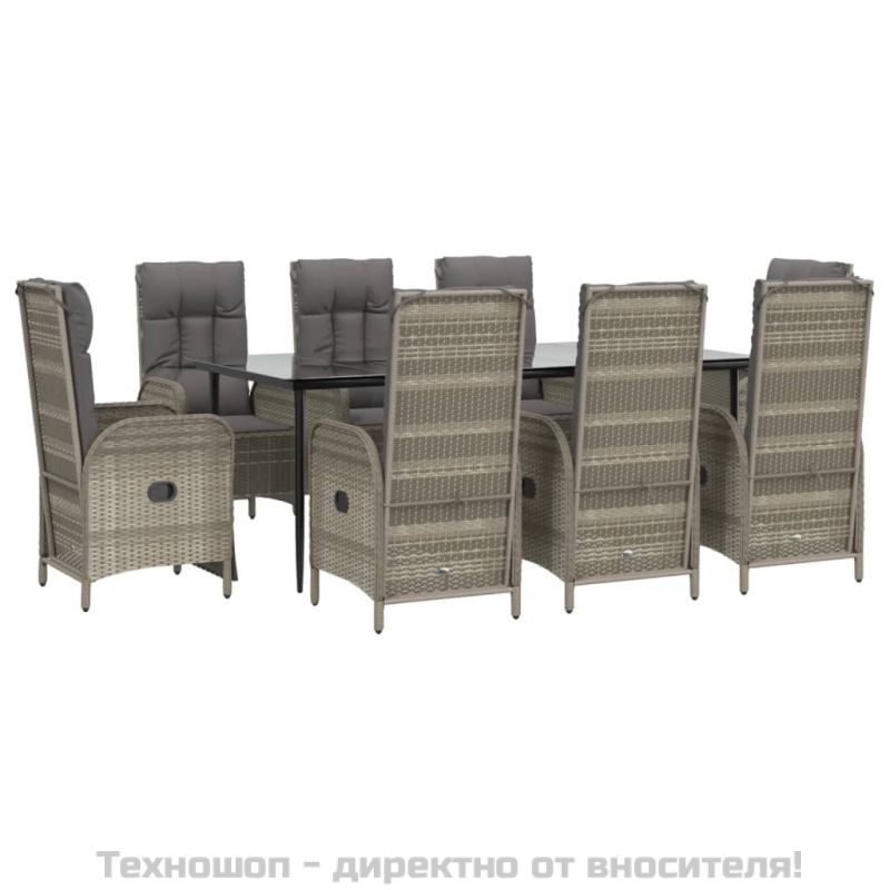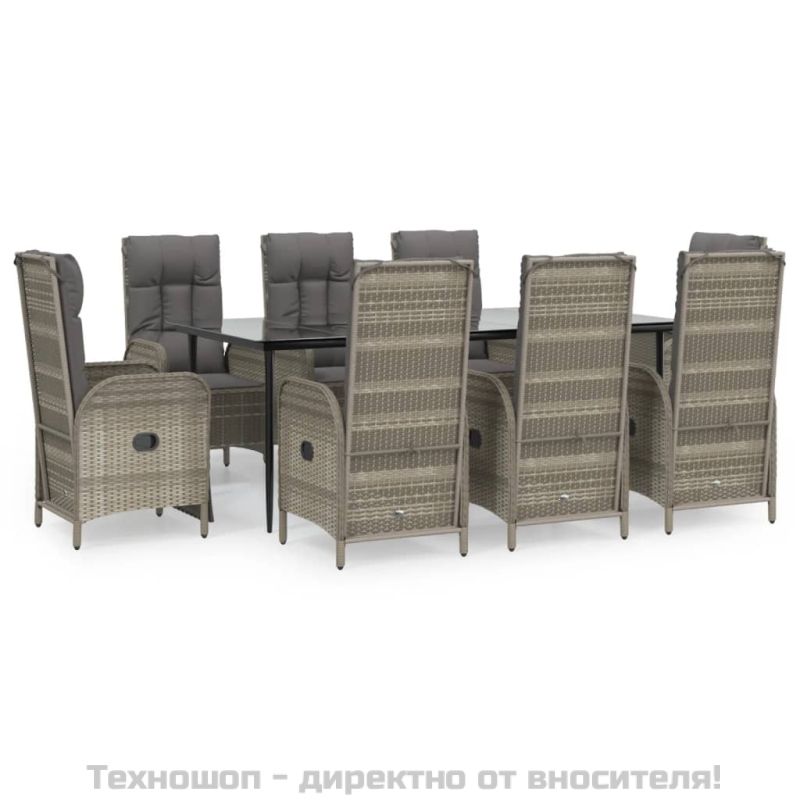Градински трапезен комплект 9 части с възглавници сив полиратан