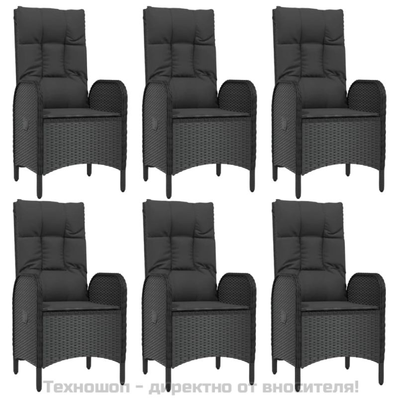 Градински трапезен комплект възглавници 9 части черен полиратан