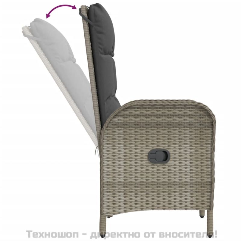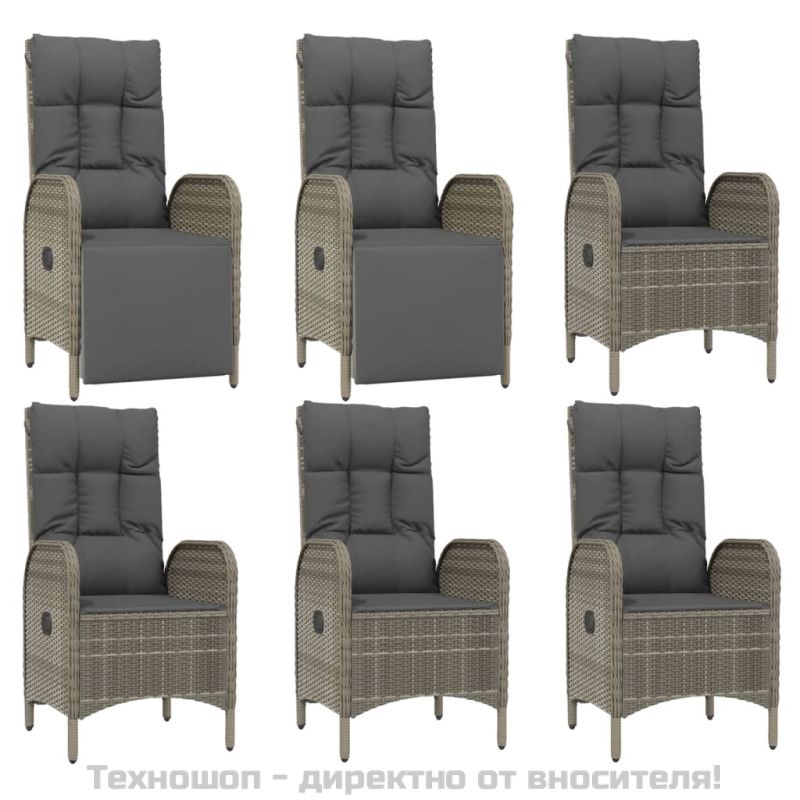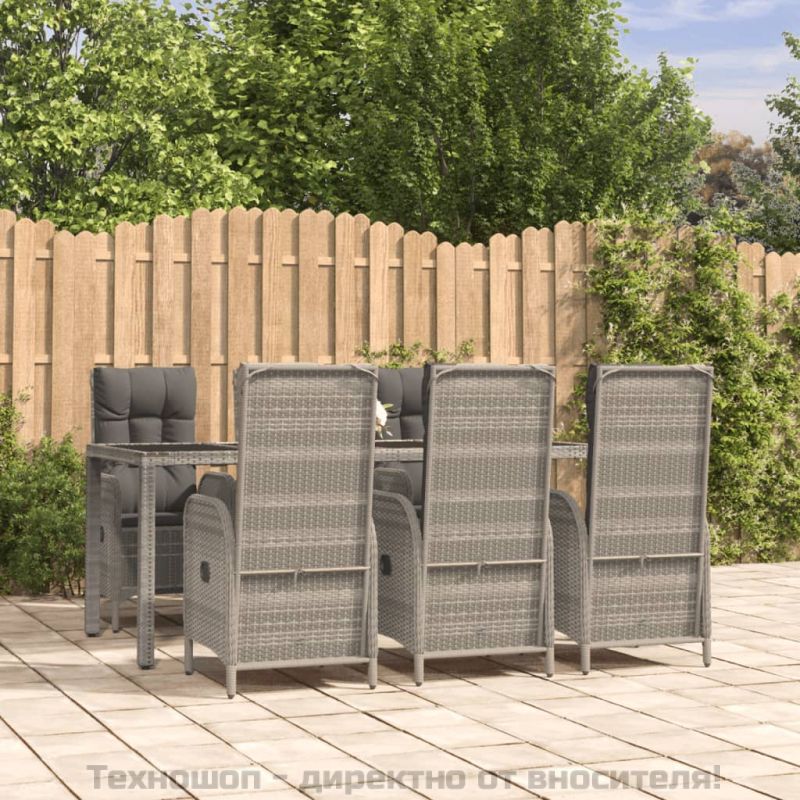 Градински трапезен комплект 7 части с възглавници сив полиратан