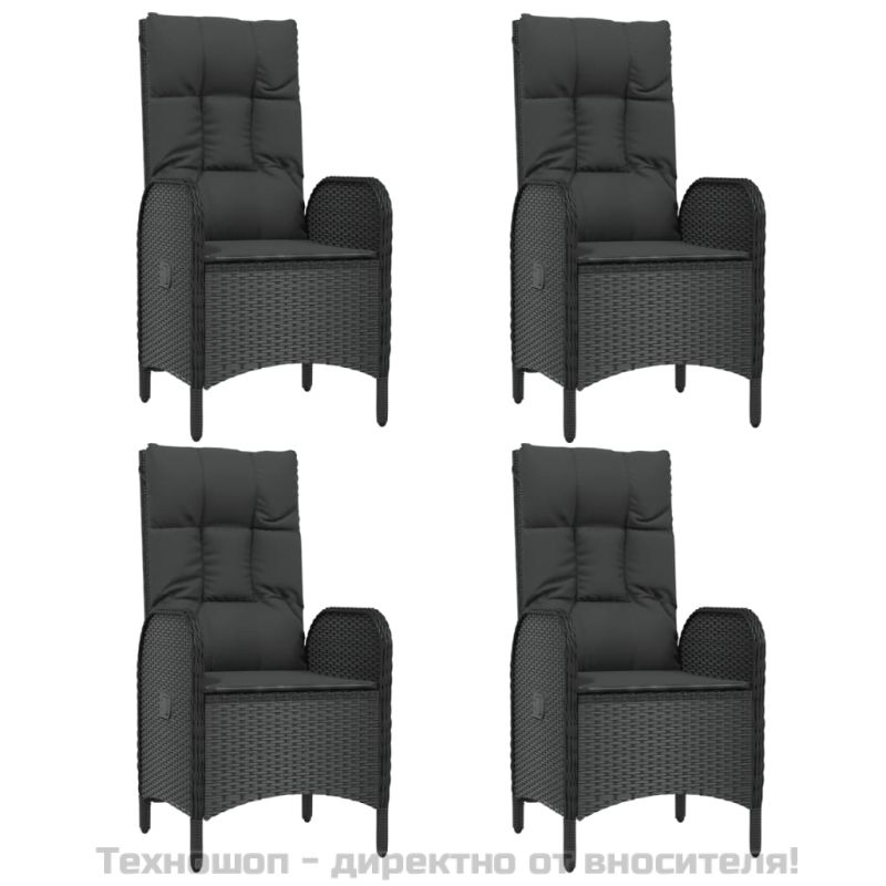 Градински трапезен комплект възглавници 5 части черен полиратан