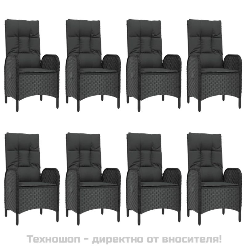 Градински трапезен комплект възглавници 9 части черен полиратан