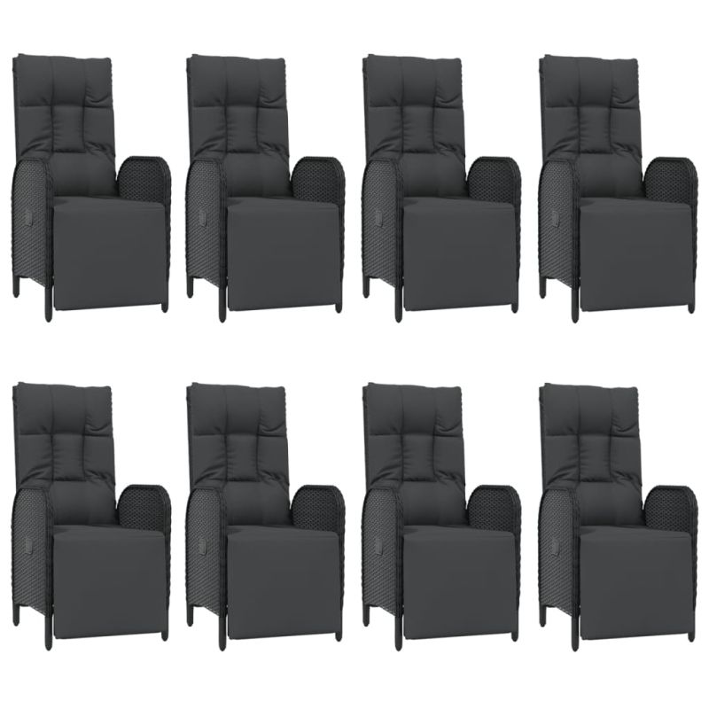 Градински трапезен комплект възглавници 9 части черен полиратан