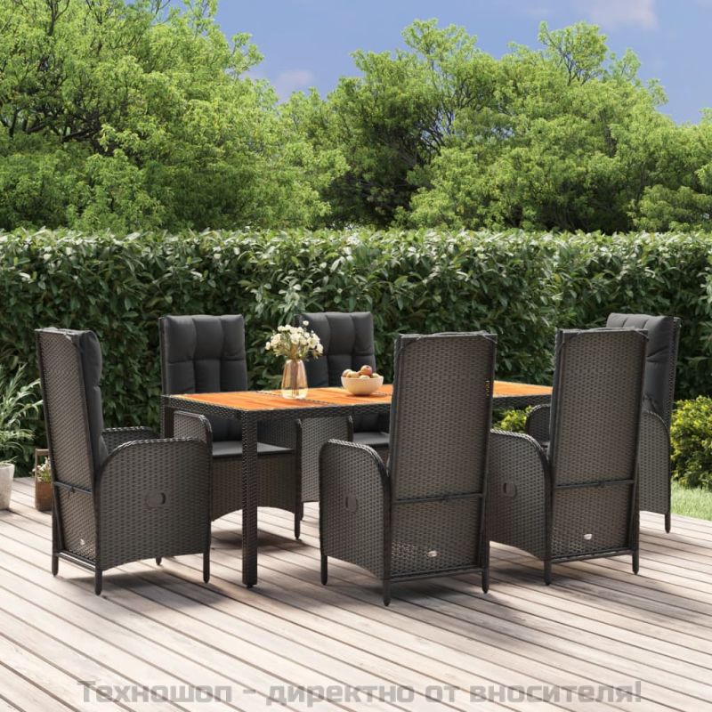 - Купете Градински трапезен комплект 7 части възглавници черен полиратан или друг продукт от нашата промоционална секция за да получите 3% отстъпка.