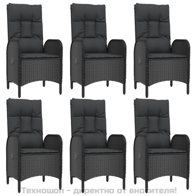 Градински трапезен комплект 7 части възглавници черен полиратан