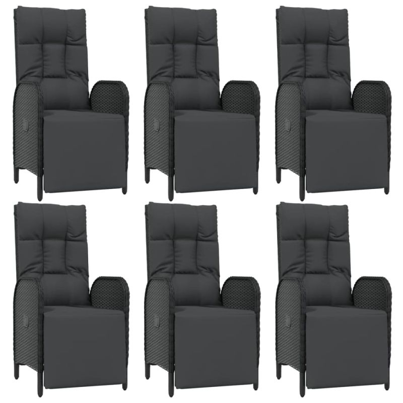 Градински трапезен комплект 7 части възглавници черен полиратан
