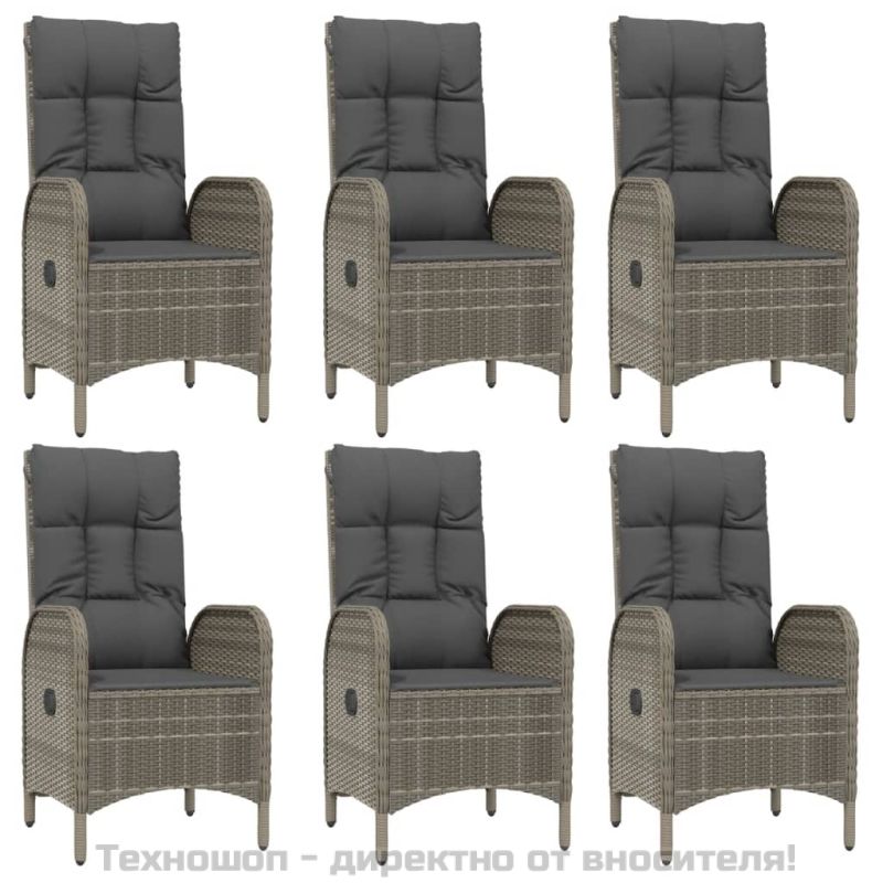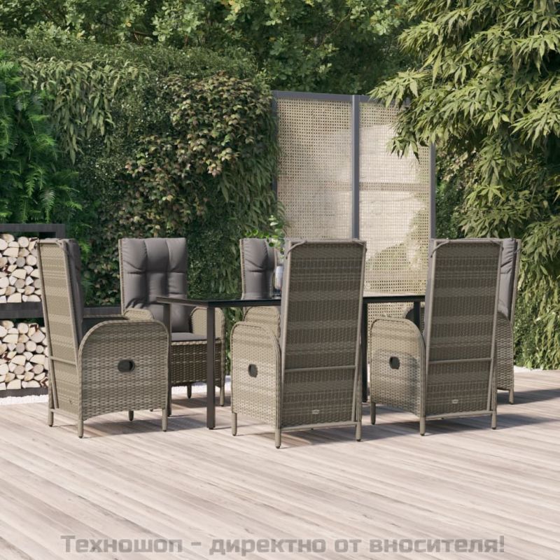 Градински трапезен комплект 7 части с възглавници сив полиратан