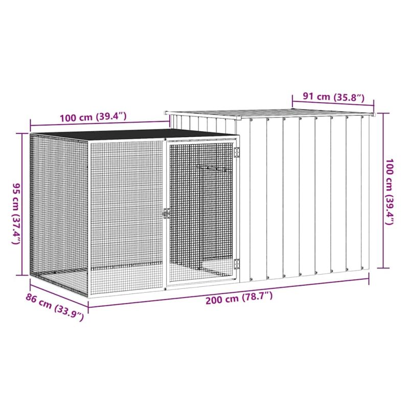 Клетка за зайци сива 200x91x100 см поцинкована стомана