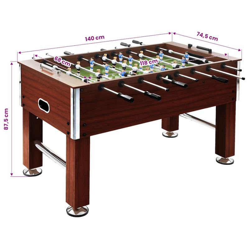 Футболна маса, стомана, 60 кг, 140x74,5x87,5 см, кафява