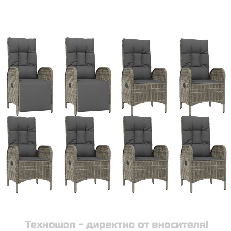 Градински трапезен комплект 9 части с възглавници сив полиратан