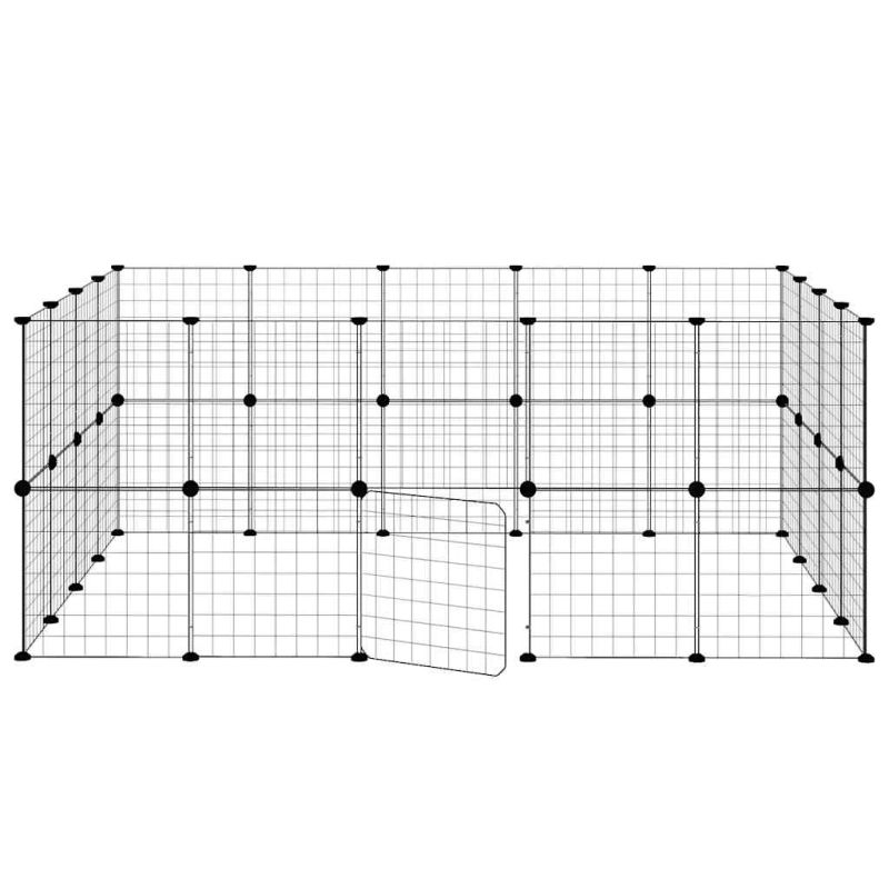 Клетка за животни с врата, 36 панела, черна, 35x35 см, стомана
