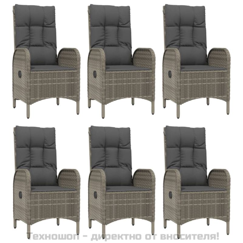 Градински трапезен комплект 7 части с възглавници сив полиратан