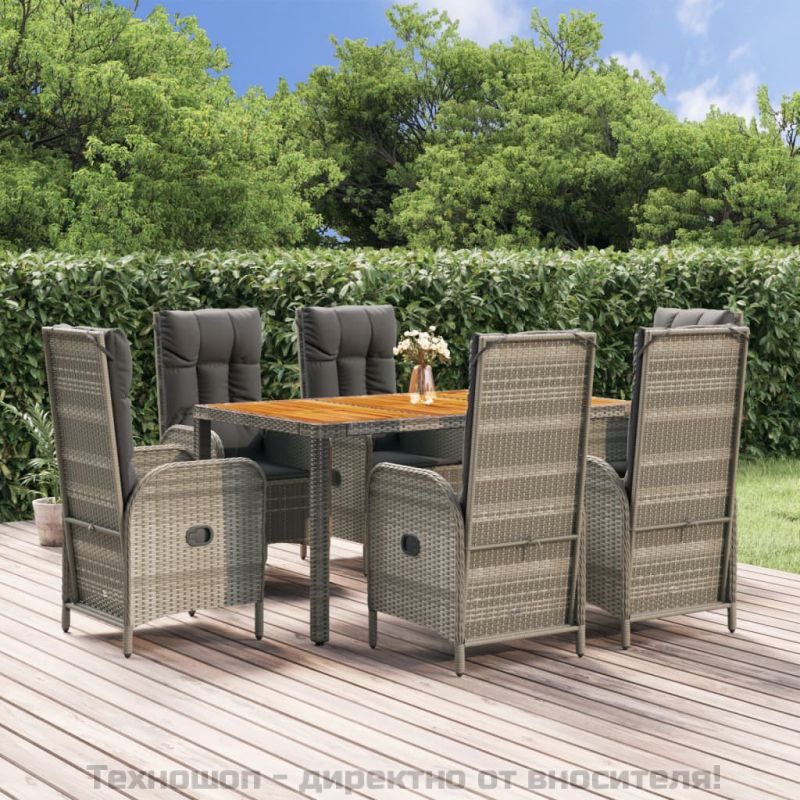 Градински трапезен комплект 7 части с възглавници сив полиратан