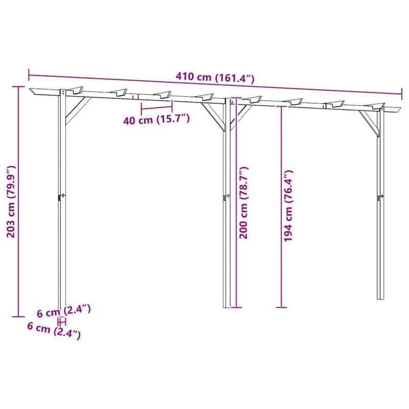 Градинска пергола, 410x40x203 см, дърво