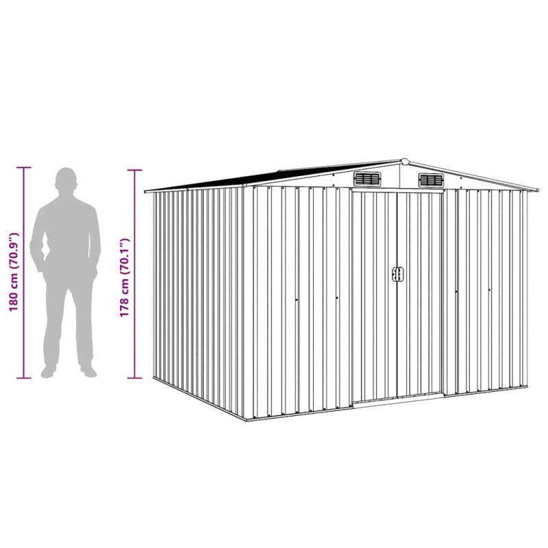 Този метален навес за съхранение ще бъде чудесно допълнение към всеки заден двор, морава или градина. Той е идеален за съхранение на градински инструменти, оборудване за грижа за тревата, домакински предмети и много други! Практичен дизайн: Този навес за съхранение има 4 вентилационни отвора, 2 отпред и 2 отзад, което осигурява отлична вентилация. Двойните плъзгащи се врати отпред позволяват лесно влизане и излизане.Издръжлив материал: Поцинкованата стоманена конструкция го прави издръжлив и здрав, така че няма да корозира или да бъде засегнат по друг начин от екстремни метеорологични условия. Включва и стоманена подова рамка, която добавя стабилност и е идеална за дървен под (дървото не е включено).Лесен за сглобяване: Предварително изрязаните, предварително пробити части и включеното ръководство за употреба осигуряват бърз и лесен монтаж.Полезно е да знаете:За да предотвратите повреди от обилно натрупване на сняг, препоръчваме редовно да почиствате покрива през зимата.