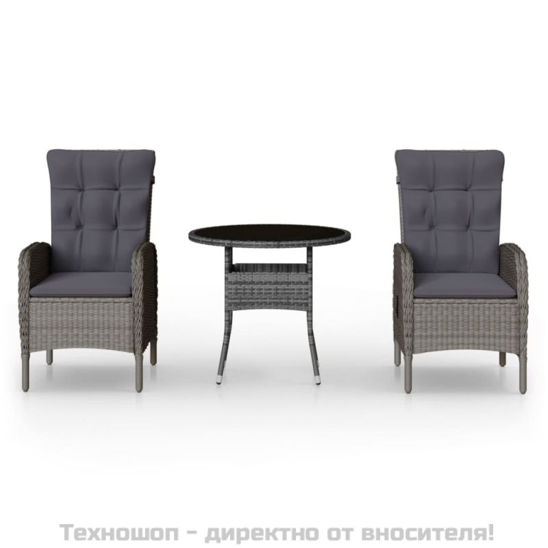 - Купете Градински бистро комплект, 3 части, полиратан, сив или друг продукт от нашата промоционална секция за да получите 3% отстъпка.