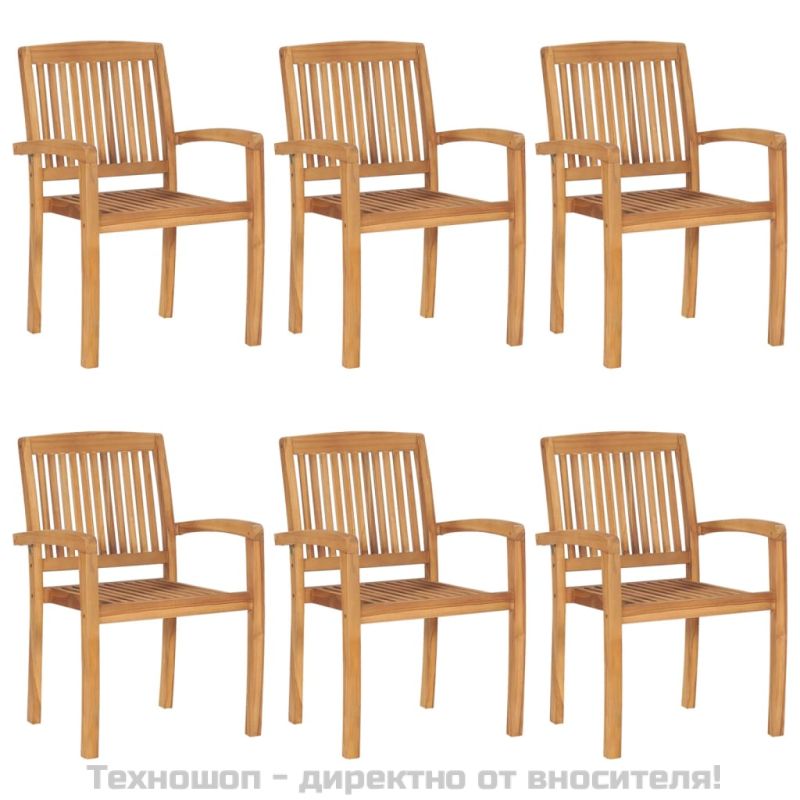 Стифиращи градински столове с възглавници 6 бр тик масив