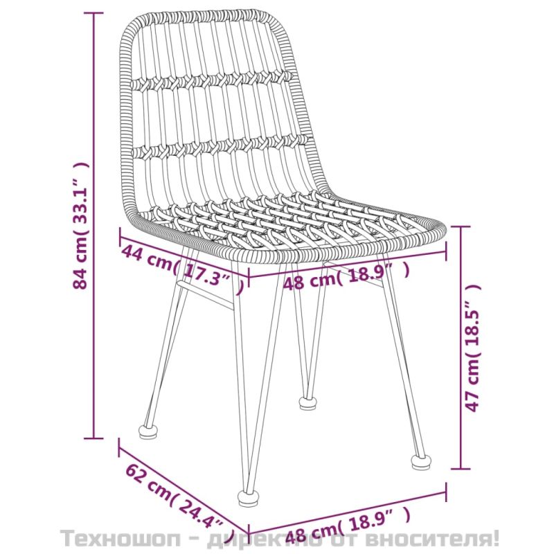 Създайте завладяваща и сплотена естетика във вашето външно пространство с този градински трапезен комплект! Издръжлив материал: PE ратан, известен също като полиратан, е устойчив на атмосферни влияния и лесен за почистване. Той остава красив отвън за дълъг период от време. Предлага отлично качество, удобство и естетичен вид.Здрава и стабилна рамка: Стоманените рамки правят комплекта за вътрешен двор здрав и стабилен за ежедневна употреба на открито.Практичен плот: Гладкият плот на трапезната маса е изработен от закалено стъкло, което се почиства лесно с влажна кърпа. В допълнение, здравият плот е идеален за поставяне на ястия, напитки и други декоративни елементи.Удобни седалки: Трапезният стол е проектиран с облегалка, за да ви осигури комфортно седене.Практични подложки за краката: Бистро комплектът се предлага с подложки за крака, които му помагат да стои по-стабилно на земята. Забележка:Забележка: За да удължите живота на вашите градински мебели, ви препоръчваме да ги защитите с водоустойчиво покривало.Всеки продукт се доставя с ръководство за сглобяване в кашона за лесно сглобяване.