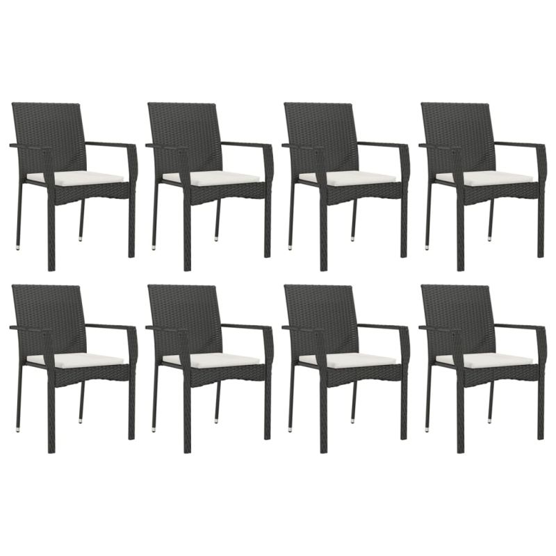 Градински трапезен комплект възглавници 9 части черен полиратан