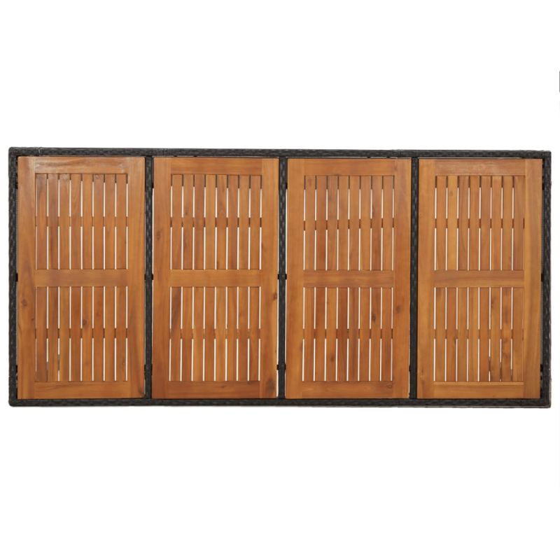 Този модерен градински трапезен комплект, отличаващ се с елегантен и съвременен дизайн, е чудесен избор за вечеря или почивка във вашата градина. Материал, устойчив на атмосферни влияния: PE ратан, известен също като полиратан, е устойчив на атмосферни влияния и лесен за почистване. Той остава красив отвън за дълъг период от време. Предлага отлично качество, удобство и естетичен вид.Здрава рамка: Прахово боядисаните стоманени рамки правят комплекта за хранене на открито здрав и стабилен за ежедневна употреба на открито.Практичен плот: Масивният плот от акациево дърво е идеален за поставяне на напитки, храна и декорации. Той е с красива визия и е лесен за почистване.Модулен дизайн: Трапезният комплект за вътрешен двор е гъвкав и лесен за преместване, така че можете да го комбинирате с други модулни сегменти от уеб магазина, за да създадете ваши лични конфигурации на градински трапезни комплекти!Удобно седене: Облегалката добавя повече комфорт при седене на градинския стол. Освен това дебело подплатените възглавници осигуряват комфорт по време на седене. Добре е да се знае:За да бъде сглобяването възможно най-лесно, всеки продукт се доставя с ръководство. Забележка:За да сте сигурни, че вашите външни мебели ще останат красиви, ви препоръчваме да ги защитите с водоустойчиво покривало.