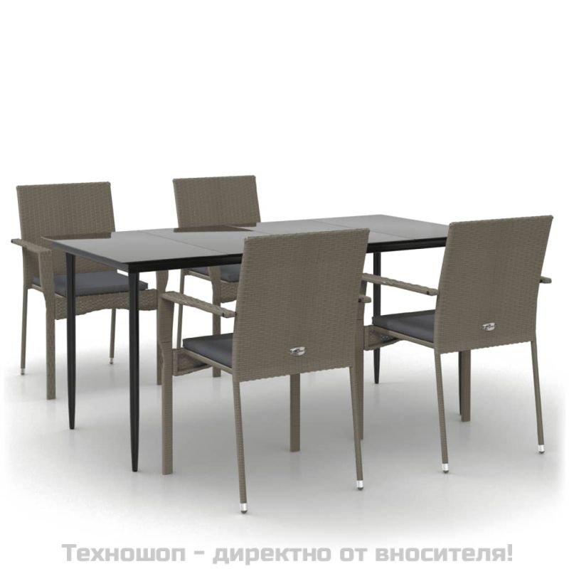 Градински трапезен комплект 5 части с възглавници сив полиратан