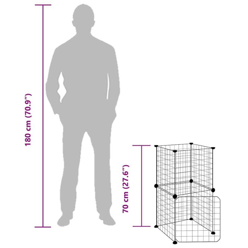 Тази надеждна клетка за домашни любимци осигурява просторно и безопасно затворено пространство за движение, игра и почивка на вашите домашни любимци. Здрав материал: Клетката за животни е изработена от прахово боядисана стомана, здрава и издръжлива е и осигурява години на употреба с малко поддръжка.Самостоятелно сглобяване: Клетката е с няколко панела, така че можете да я сглобите в желаната форма и размер.Обширно простраство: Клетката за животни предлага изобилие от място за игра и почивка на вашите домашни любимци, които същевременно ще са защитени в нейните граници.Практична врата: Клетката за домашни любимци разполага и с практична вратичка, която създава удобство в грижата за вашите домашни любимци. Забележка: Всеки продукт се доставя с ръководство за сглобяване в кашона за лесно сглобяване.