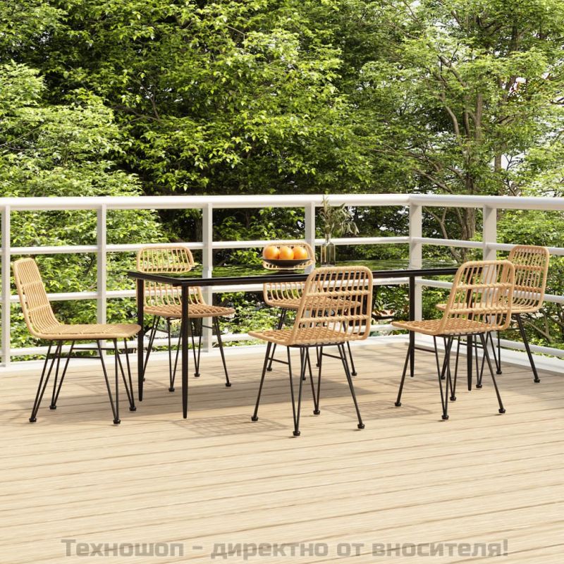 Създайте завладяваща и сплотена естетика във вашето външно пространство с този градински трапезен комплект! Издръжлив материал: PE ратан, известен също като полиратан, е устойчив на атмосферни влияния и лесен за почистване. Той остава красив отвън за дълъг период от време. Предлага отлично качество, удобство и естетичен вид.Здрава и стабилна рамка: Стоманените рамки правят комплекта за вътрешен двор здрав и стабилен за ежедневна употреба на открито.Практичен плот: Гладкият плот на трапезната маса е изработен от закалено стъкло, което се почиства лесно с влажна кърпа. В допълнение, здравият плот е идеален за поставяне на ястия, напитки и други декоративни елементи.Удобни седалки: Трапезният стол е проектиран с облегалка, за да ви осигури комфортно седене.Практични подложки за краката: Бистро комплектът се предлага с подложки за крака, които му помагат да стои по-стабилно на земята. Забележка:Забележка: За да удължите живота на вашите градински мебели, ви препоръчваме да ги защитите с водоустойчиво покривало.Всеки продукт се доставя с ръководство за сглобяване в кашона за лесно сглобяване.
