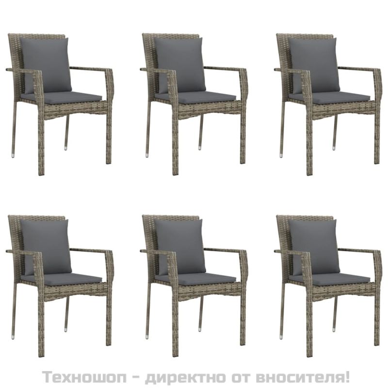 Градински трапезен комплект 7 части с възглавници сив полиратан