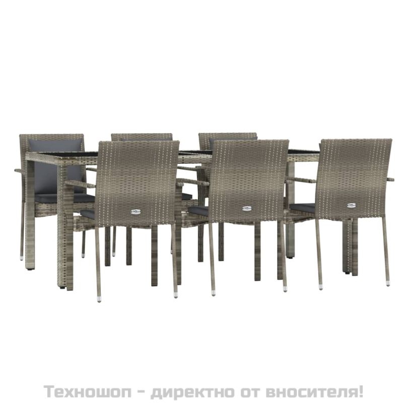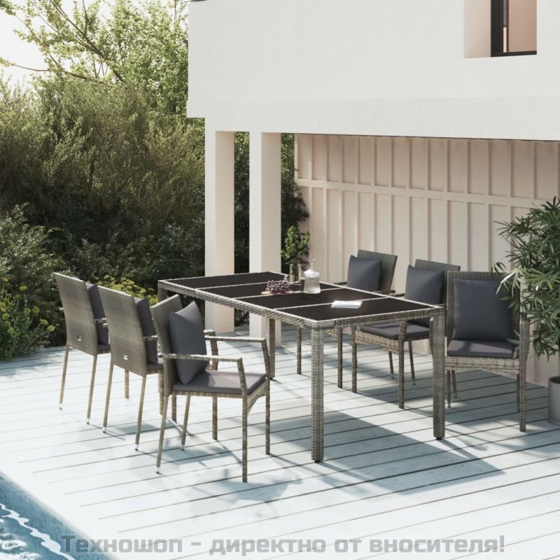 Градински трапезен комплект 7 части с възглавници сив полиратан