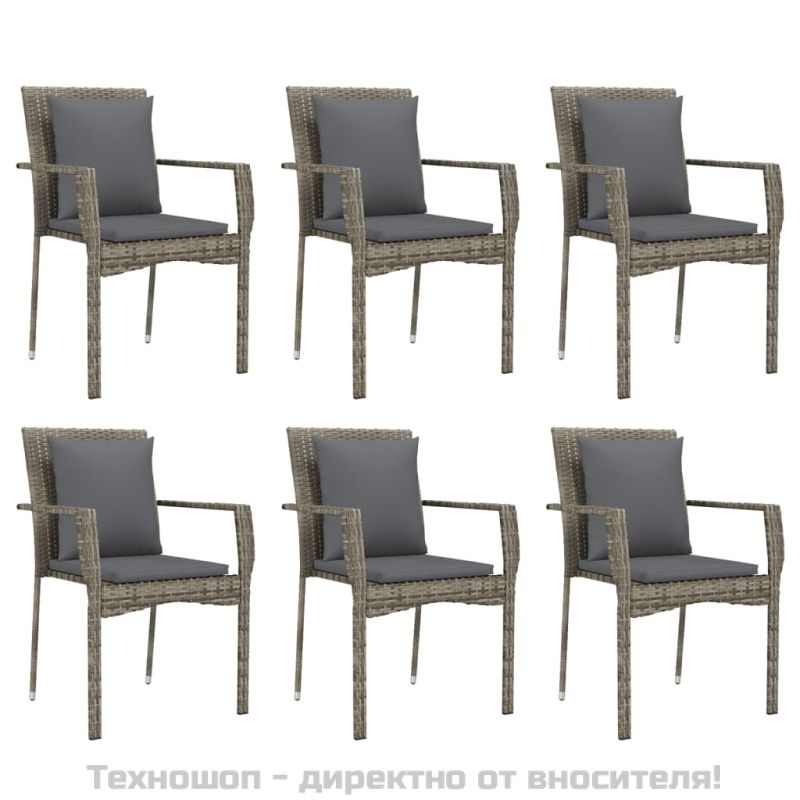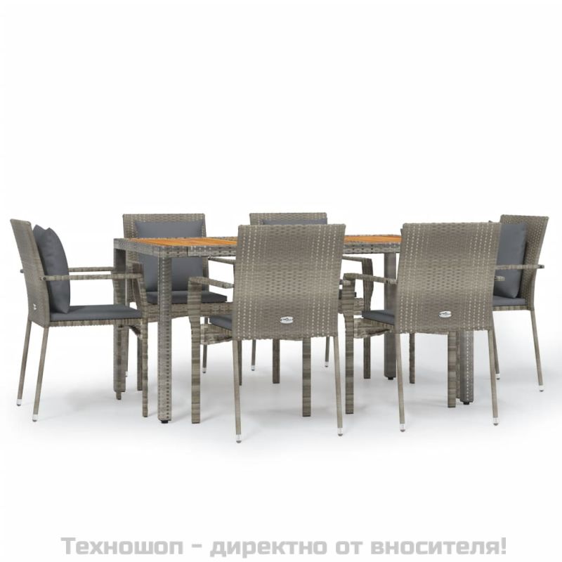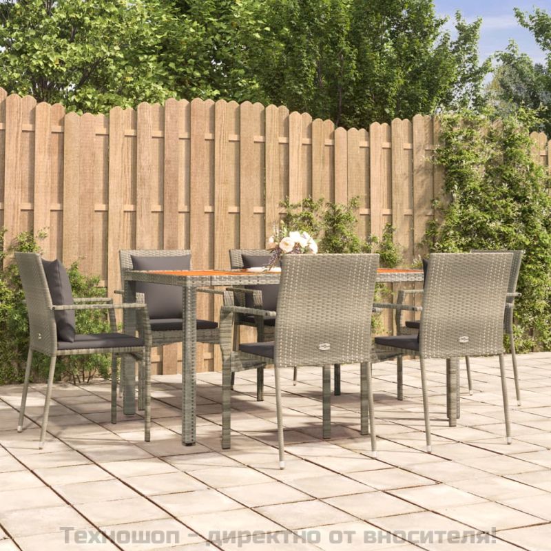 Градински трапезен комплект 7 части с възглавници сив полиратан