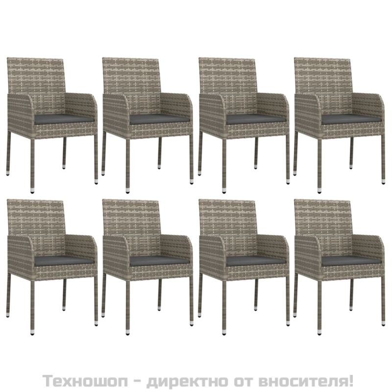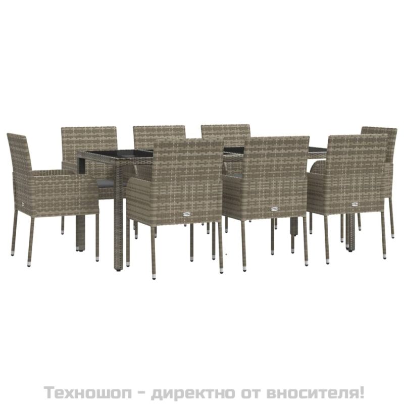 Градински трапезен комплект 9 части с възглавници сив полиратан