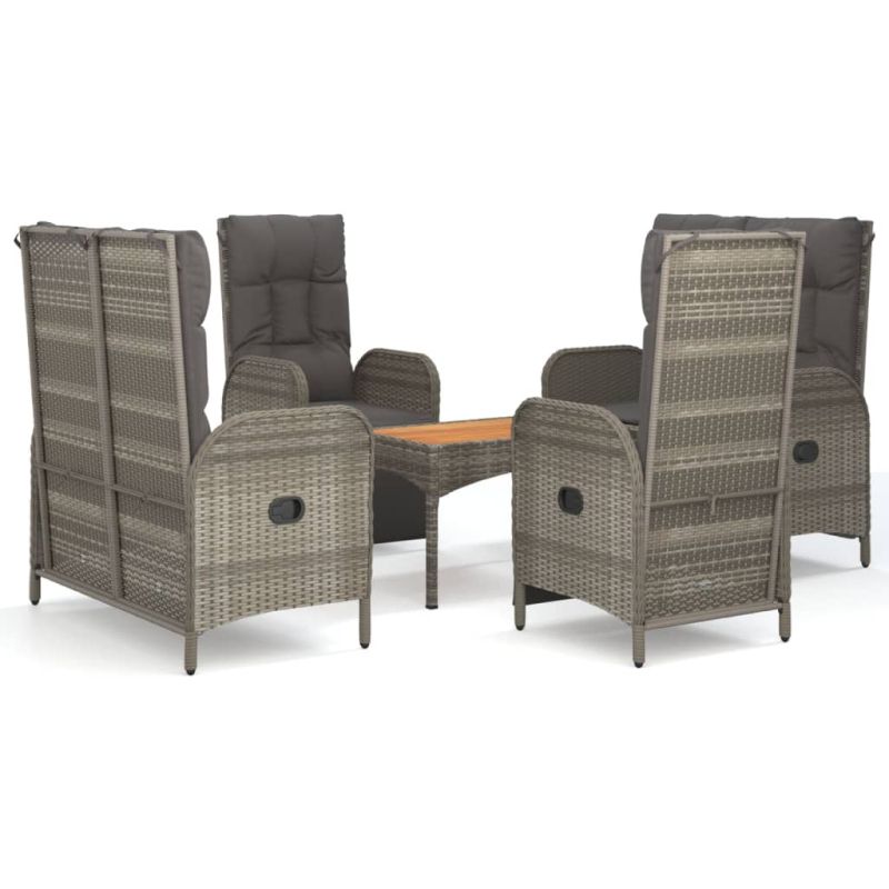 Градински трапезен комплект 5 части с възглавници сив полиратан