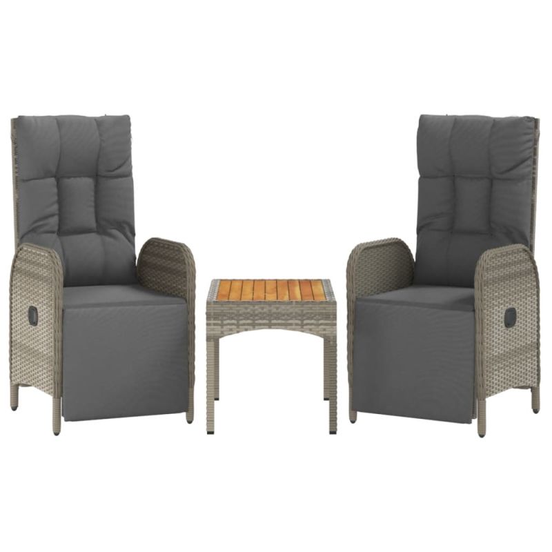 Този модерен градински трапезен комплект, отличаващ се с елегантен и съвременен дизайн, е чудесен избор за вечеря или почивка във вашата градина. Материал, устойчив на атмосферни влияния: PE ратан, известен също като полиратан, е устойчив на атмосферни влияния и лесен за почистване. Той остава красив отвън за дълъг период от време. Предлага отлично качество, удобство и естетичен вид.Здрава рамка: Прахово боядисаните стоманени рамки правят комплекта за хранене на открито здрав и стабилен за ежедневна употреба на открито.Практичен плот: Масивният плот от акациево дърво е идеален за поставяне на напитки, храна и декорации. Той е с красива визия и е лесен за почистване.Функция за накланяне: Градинските столове са специално проектирани с функция за накланяне, така че да можете да регулирате облегалката според вашето удобство.Удобно седене: Облегалката добавя повече комфорт при седене на градинския стол. Освен това дебело подплатените възглавници осигуряват комфорт по време на седене. Добре е да се знае:За да бъде сглобяването възможно най-лесно, всеки продукт се доставя с ръководство. Забележка:За да сте сигурни, че вашите външни мебели ще останат красиви, ви препоръчваме да ги защитите с водоустойчиво покривало. Максимално 110 кг на седалка.