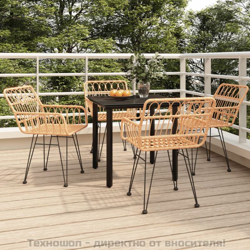 Създайте завладяваща и сплотена естетика във вашето външно пространство с този градински трапезен комплект! Издръжлив материал: PE ратан, известен също като полиратан, е устойчив на атмосферни влияния и лесен за почистване. Той остава красив отвън за дълъг период от време. Предлага отлично качество, удобство и естетичен вид.Здрава и стабилна рамка: Стоманените рамки правят комплекта за вътрешен двор здрав и стабилен за ежедневна употреба на открито.Практичен плот: Гладкият плот на трапезната маса е изработен от закалено стъкло, което се почиства лесно с влажна кърпа. В допълнение, здравият плот е идеален за поставяне на ястия, напитки и други декоративни елементи.Удобни места за сядане: Трапезният стол е проектиран с облегалка и подлакътник, за да ви предложи удобно изживяване при сядане.Практични подложки за краката: Бистро комплектът се предлага с подложки за крака, които му помагат да стои по-стабилно на земята. Забележка:Забележка: За да удължите живота на вашите градински мебели, ви препоръчваме да ги защитите с водоустойчиво покривало.Всеки продукт се доставя с ръководство за сглобяване в кашона за лесно сглобяване. Максимално 110 кг на седалка.