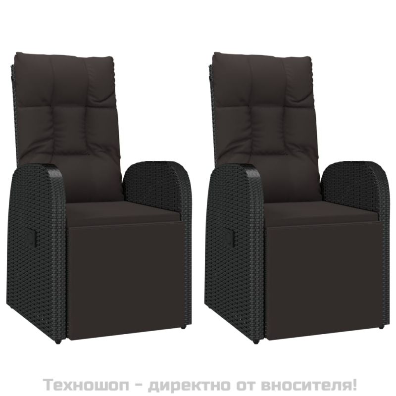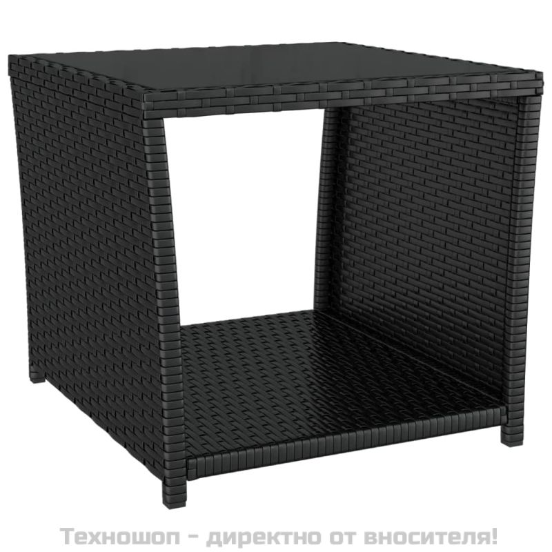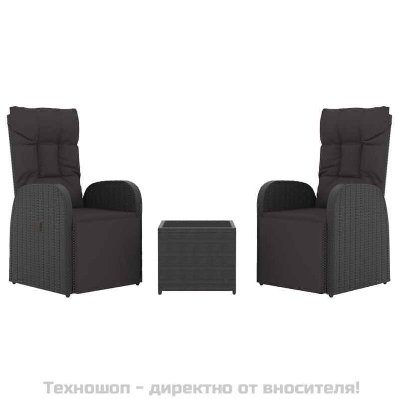 Градински лаундж комплект от 3 части черен полиратан и стомана