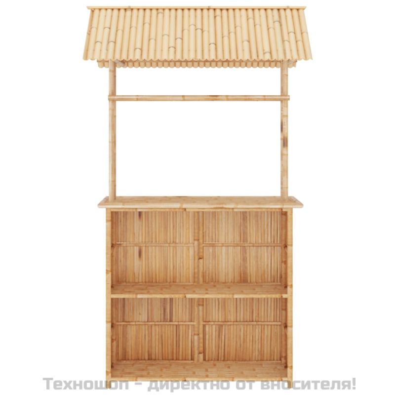 Този уникален бамбуков бар комплект добавя тропически щрих към вашата градина или вътрешен двор. Издръжлив бамбук: Бар комплектът е изработен от бамбук, който е изключително издръжлив. Материалът не променя цвета си дълго време.Здрава рамка: Бамбуковата рамка на градинската маса и столове осигурява здравина и стабилност.Атрактивен дизайн: Бар масата има отличителен дизайн с покрив, който осигурява защита от слънцето, докато се забавлявате със семейството и приятелите си.Сгъваема функция: Столовете могат да се сгъват, когато не се използват. Забележка:Забележка: За да удължите живота на вашите градински мебели, ви препоръчваме да ги защитите с водоустойчиво покривало.Всеки продукт се доставя с ръководство за сглобяване в кашона за лесно сглобяване. Максимално 110 кг на седалка.