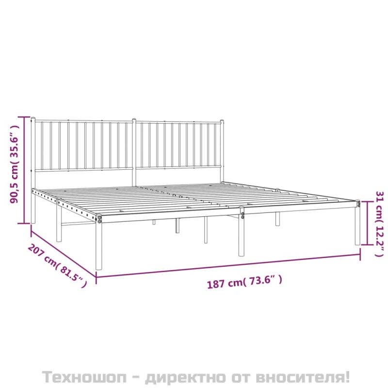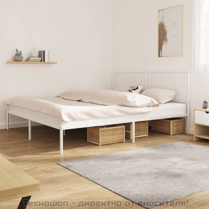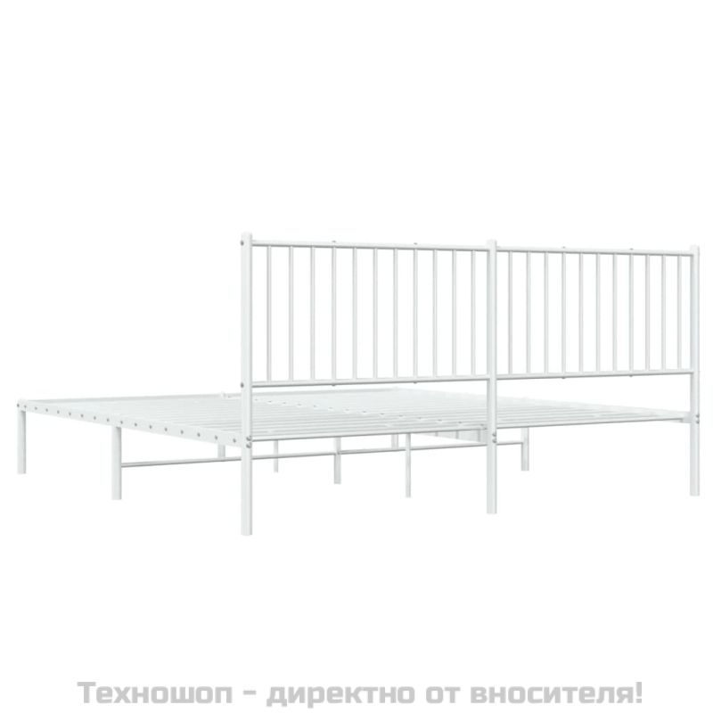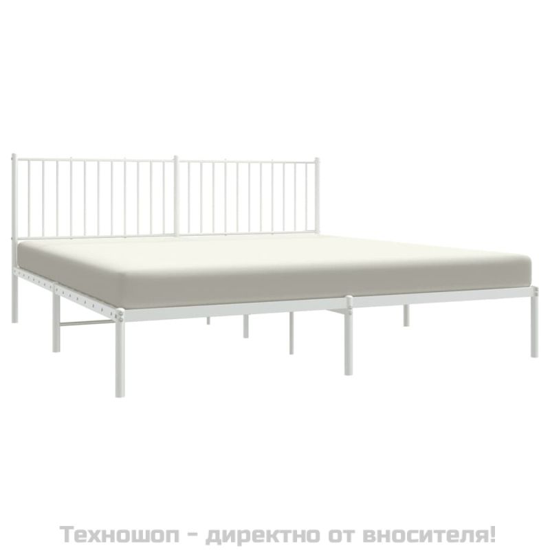 Метална рамка за легло с горна табла, бяла, 180x200 см