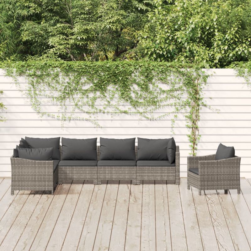 Градински лаундж комплект с възглавници 7 части полиратан сив
