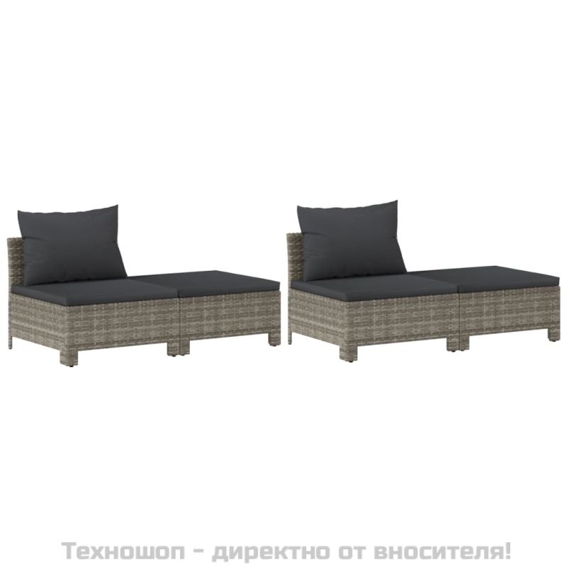 Градински комплект с възглавници, 8 части, полиратан, сив