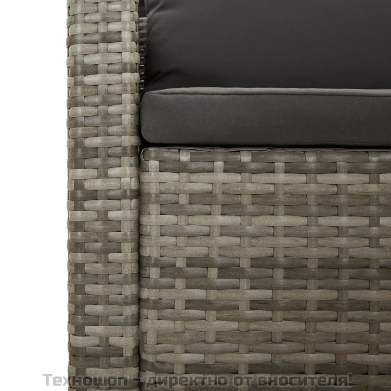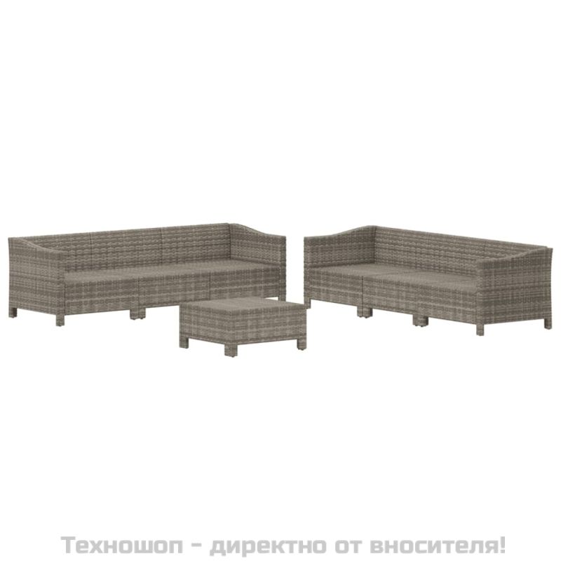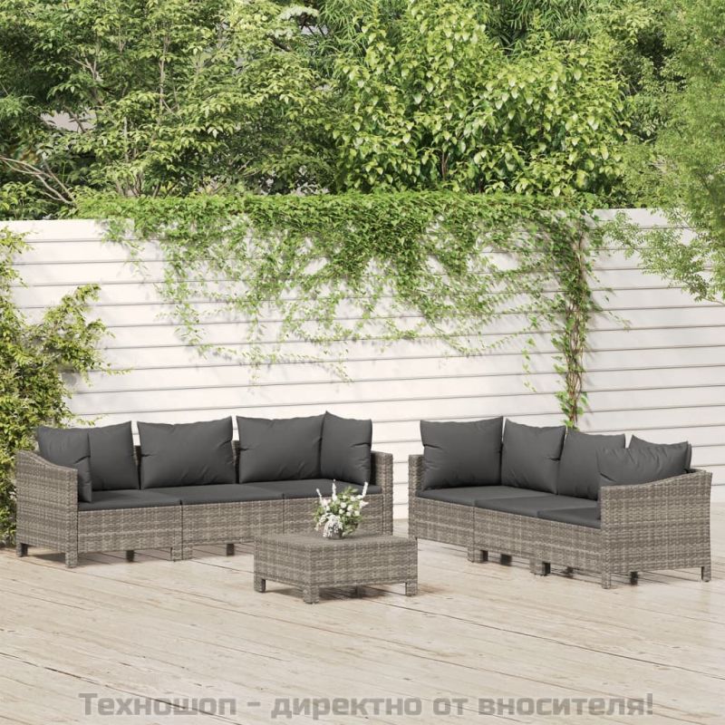 Градински лаундж комплект с възглавници 7 части полиратан сив