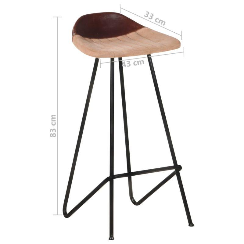 Бар табуретки, 2 бр, кафяви, естествена кожа